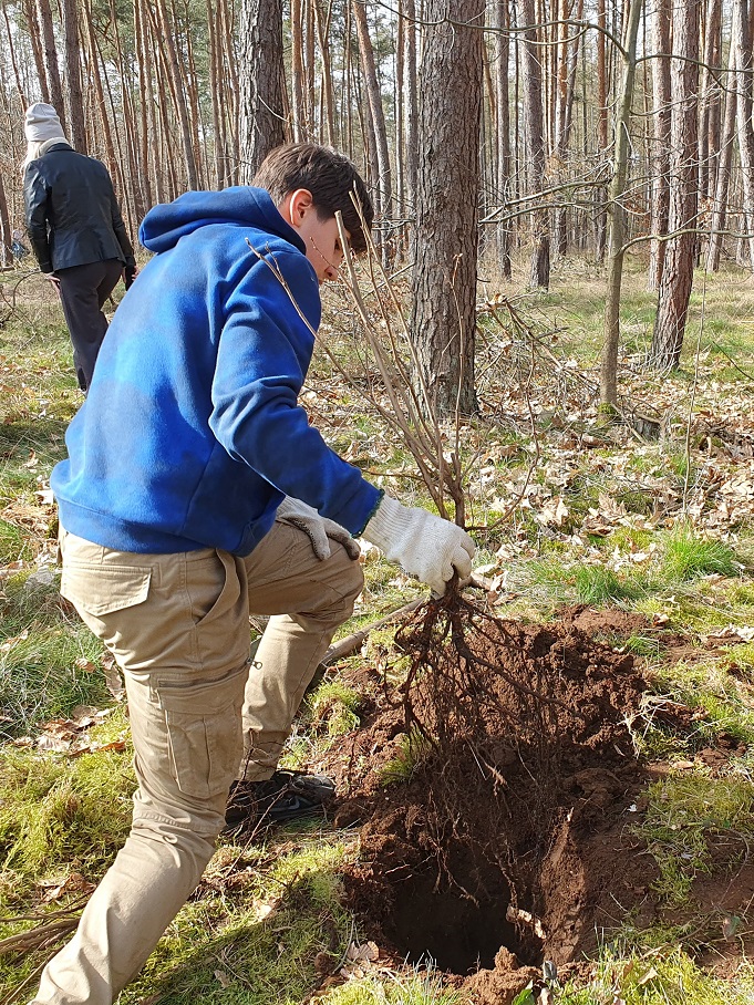 Am „Tag des Waldes“ am 21. März unterstützten 20 Schülerinnen und Schüler der Klasse 7d der Carl-Schurz-Schule Mitglieder der SDW und Mitarbeitende vom StadtForst Frankfurt bei der Pflanzung von 300 Flatterulmen, 200 Hainbuchen und 200 Sträuchern. In Niederrad wurde bei schönstem Sonnenschein in einem mittlerweile sehr lichten Kiefernbestand geharkt, gegraben, eingesetzt und festgedrückt. Die Pflanzaktion im Forstrevier Niederrad hat Kreisverband Frankfurt der SDW organisiert und auch die Pflanzen gespendet. Die Pflanzflächen und verschiedene Materialien stellte der StadtForst Frankfurt bereit und half tatkräftig beim Pflanzen.