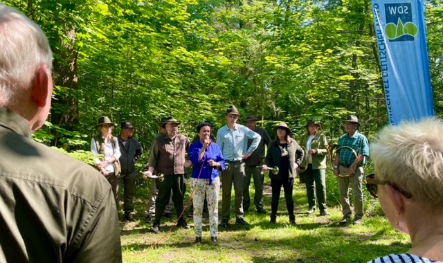 Bei Sonnenschein und Vogelgesang feierten wir am 12. Mai den 60. Geburtstag der Grastränke. Die Grastränke ist ein Vogelschutzgehölz im Oberwald – und eine Herzensangelegenheit für uns. Denn seit 1995 wird sie allein von der Schutzgemeinschaft Deutscher Wald betrieben. Unsere ehrenamtlichen Helferinnen und Helfer pflegen Nistkästen und Infotafeln, schneiden die Wege frei und geben Auskunft zur Vogelfütterung und zum Wald.
