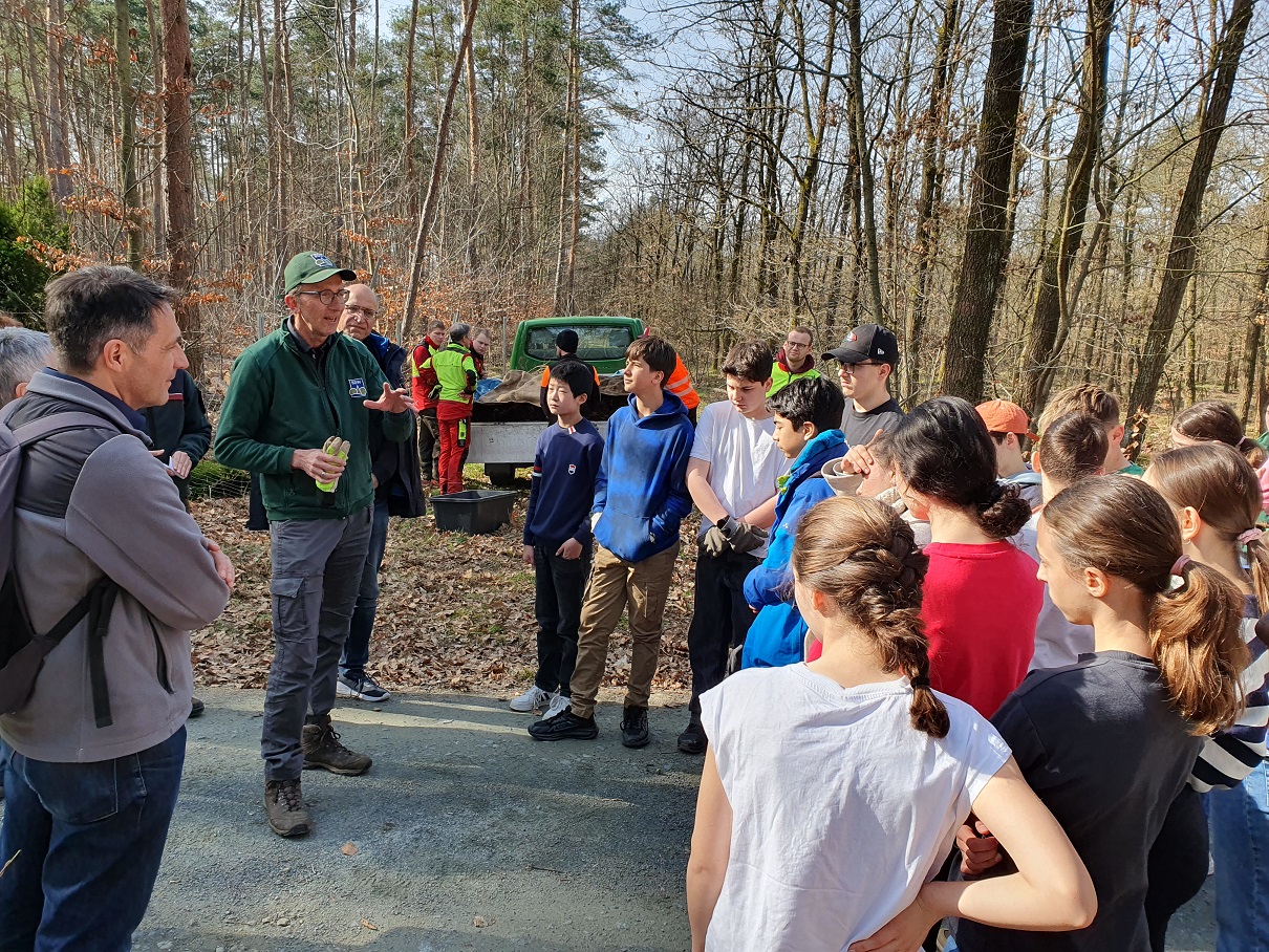„Tag des Waldes“: Baumpflanzaktion der Schutzgemeinschaft Deutscher Wald mit einer Schulklasse in Zusammenarbeit mit dem StadtForst Frankfurt