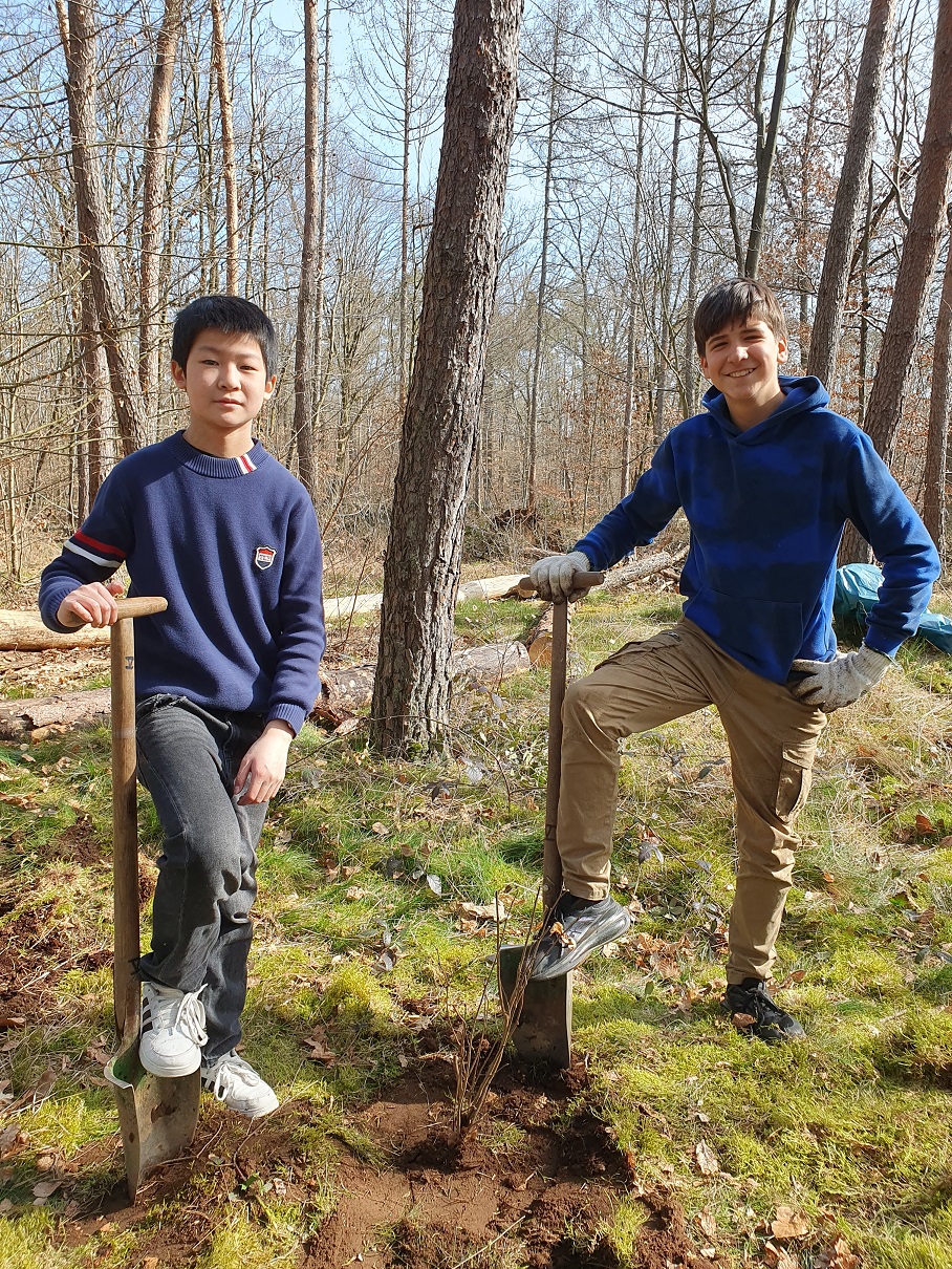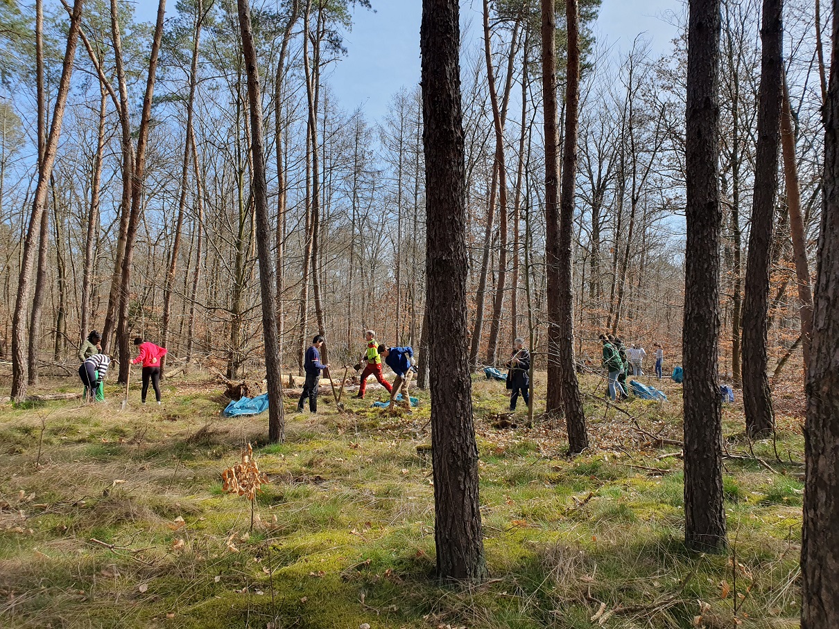 Am „Tag des Waldes“ am 21. März unterstützten 20 Schülerinnen und Schüler der Klasse 7d der Carl-Schurz-Schule Mitglieder der SDW und Mitarbeitende vom StadtForst Frankfurt bei der Pflanzung von 300 Flatterulmen, 200 Hainbuchen und 200 Sträuchern. In Niederrad wurde bei schönstem Sonnenschein in einem mittlerweile sehr lichten Kiefernbestand geharkt, gegraben, eingesetzt und festgedrückt. Die Pflanzaktion im Forstrevier Niederrad hat Kreisverband Frankfurt der SDW organisiert und auch die Pflanzen gespendet. Die Pflanzflächen und verschiedene Materialien stellte der StadtForst Frankfurt bereit und half tatkräftig beim Pflanzen.